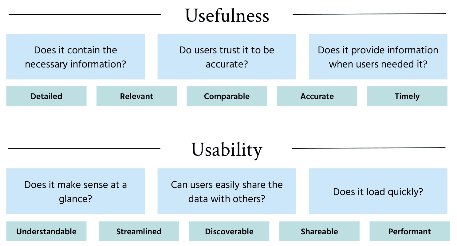 Building on the insights from this study and previous work, I created a reusable framework of design requirements for my design partners, categorized by usefulness and usability.