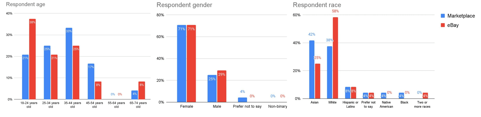 Marketplace shoppers were more likely to be Asian and older than eBay shoppers, who were more likely to be White and younger.