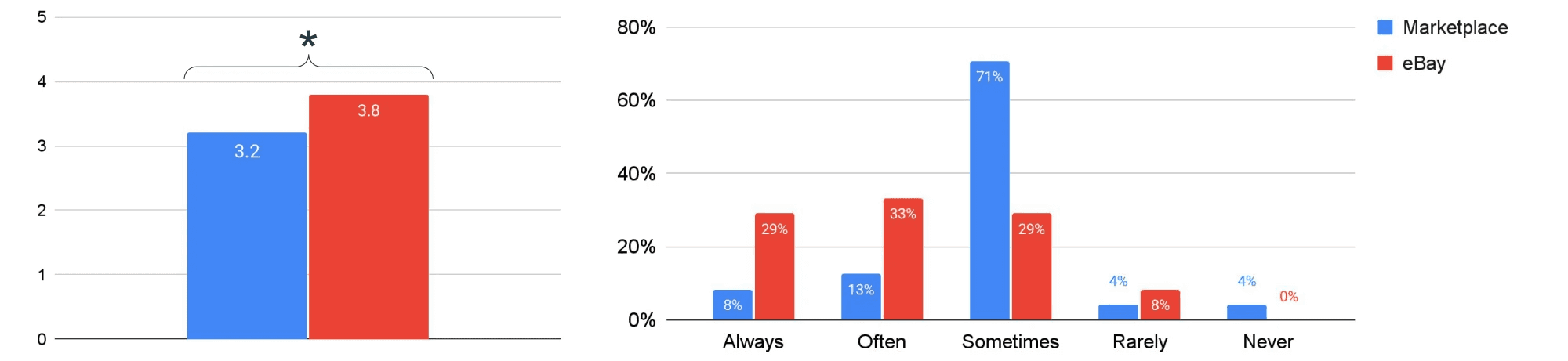 Shoppers thought the eBay website was easier to use than Marketplace.